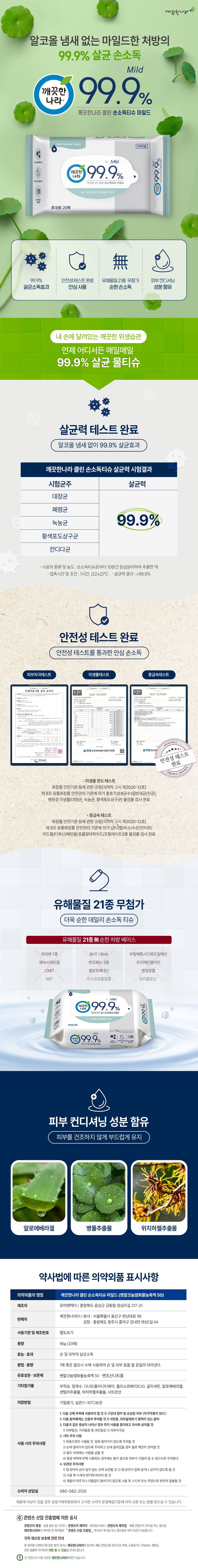 [깨끗한나라] 99.9% 마일드 클린 손소독 물티슈 휴대형 20매X50팩