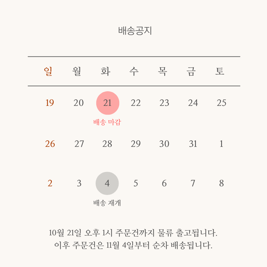 일정상 부득이하게 배송이 다소 지연되는 점 양해 부탁드립니다.