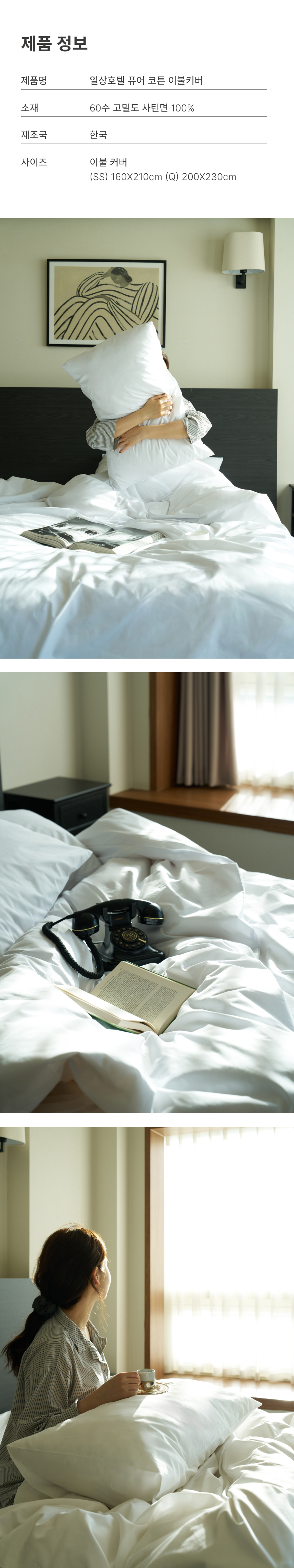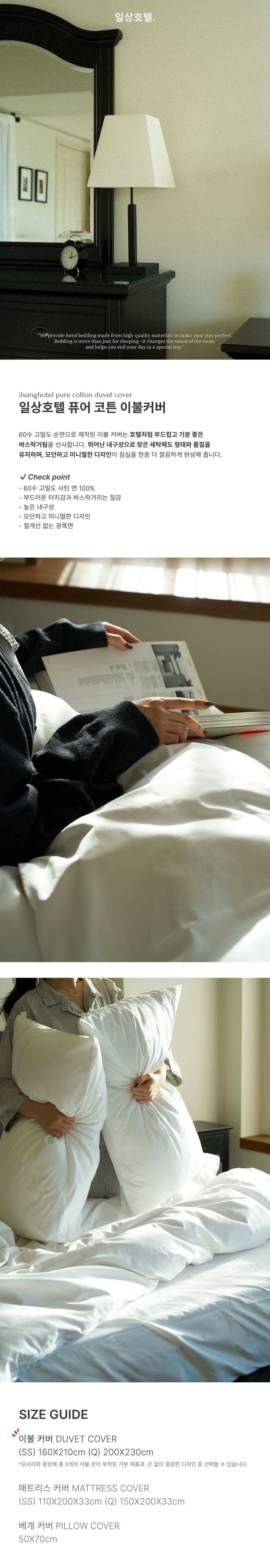 [일상호텔] 퓨어 코튼(면 60수) 이불 커버