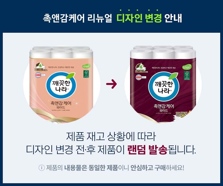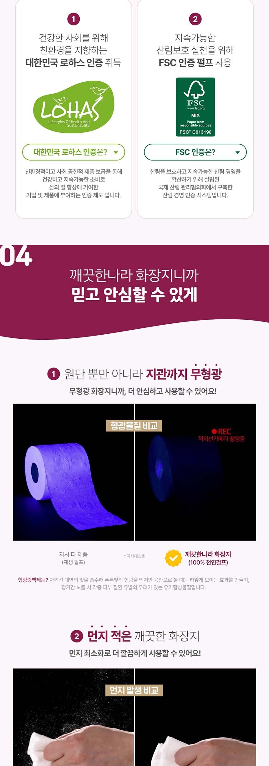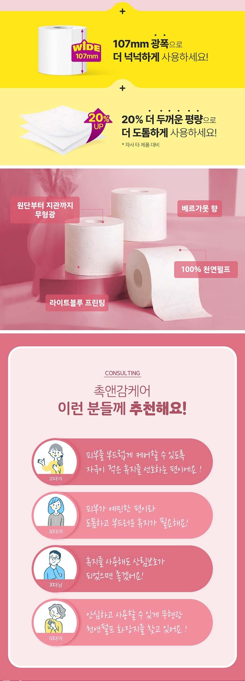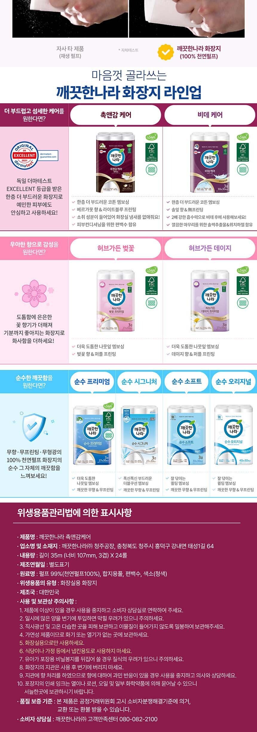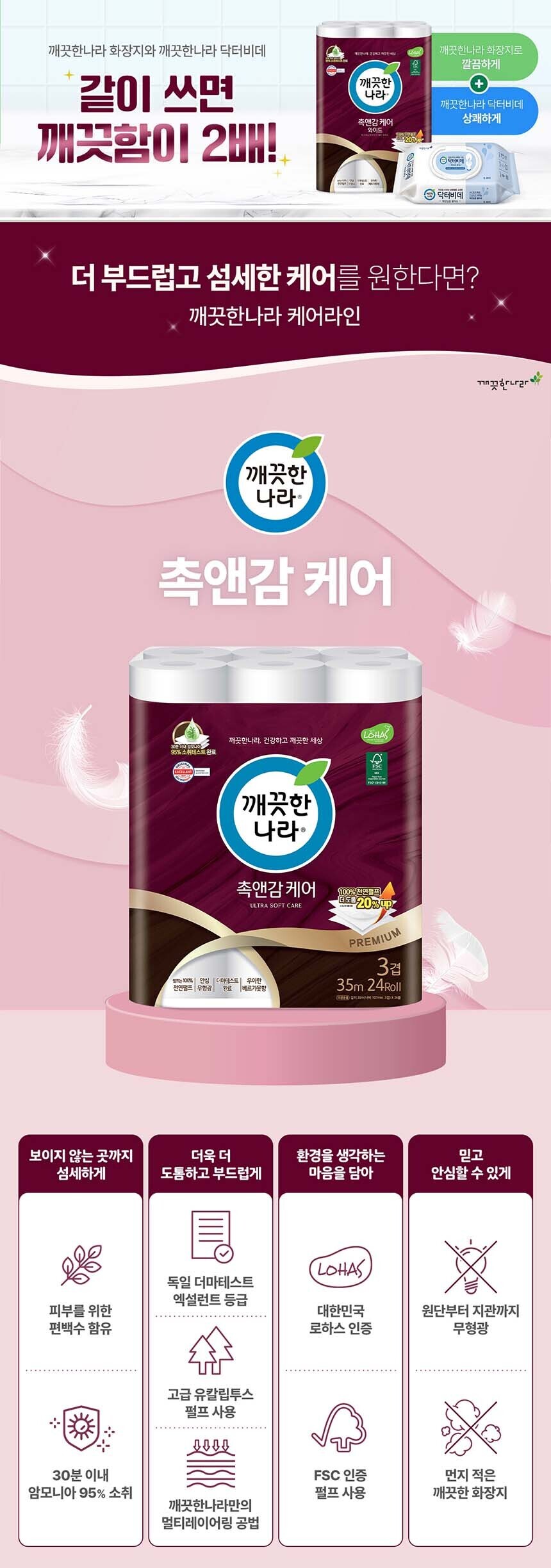 [깨끗한나라] 3겹 천연펄프 촉앤감케어 35m 24롤X2팩 롤화장지